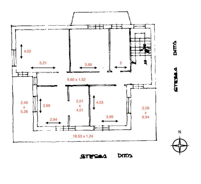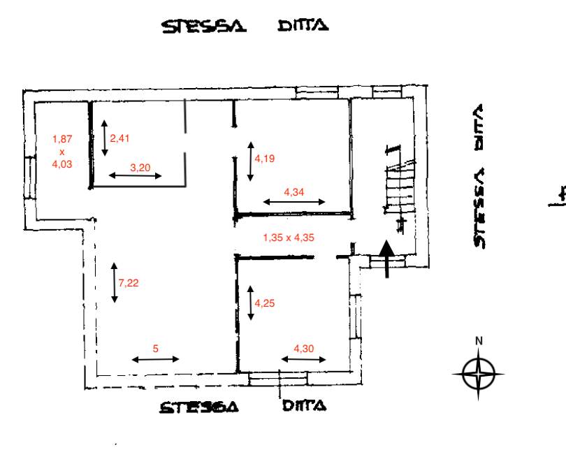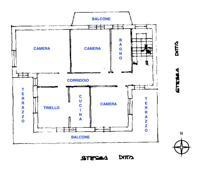 Primo Piano - zona abitativa principale con ambienti luminosi e ben esposti dove troviamo il tinello con il cucinotto, tre camere da letto di generosa metratura e un bagno finestrato
