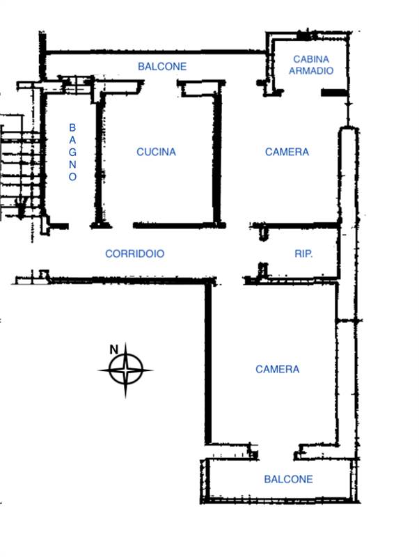 COMPOSIZIONE INTERNA: ingresso su corridoio che disimpegna i vari ambienti, cucina abitabile, due camere da letto con affaccio tramite balcone di cui una con una piccola cabina armadio, bagno finestrato con vasca e un comodo ripostiglio.